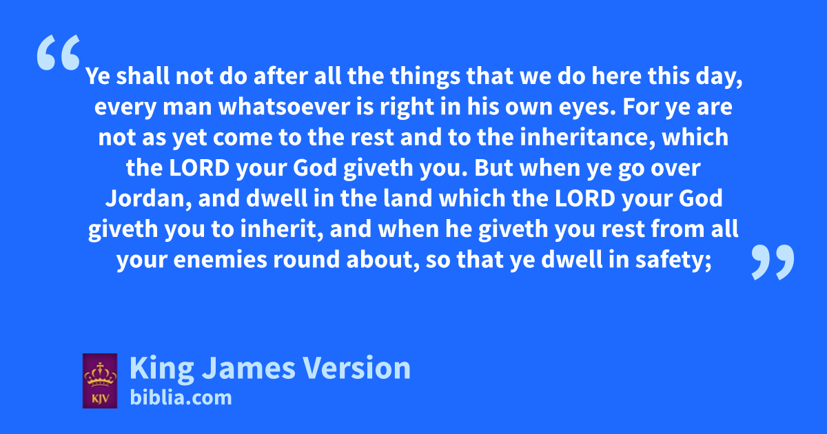 12 aThese are the statutes and judgments, which ye shall observe to do in the land, which the Lord God of thy fathers giveth thee to possess it, ball the days that ye live upon the earth. 2 Ye shall utterly destroy all the places, wherein the nations which ye shall ||possess served their gods, cupon the high mountains, and upon the hills, and under every green tree: 3 And ye shall †overthrow their altars, and break dtheir pillars, and burn their groves with fire; and eye shall hew down the graven images of their gods, and destroy the names of them out of that place. 4 fYe shall not do so unto the Lord your God. 5 But gunto the place which the Lord your God shall choose out of all your tribes to put his name there, even unto his habitation shall ye seek, and thither thou shalt come: 6 And thither ye shall bring your burnt offerings, and your sacrifices, and your htithes, and heave offerings of your hand, and your vows, and your freewill offerings, and ithe firstlings of your herds and of your flocks: 7 And jthere ye shall eat before the Lord your God, and kye shall rejoice in all lthat ye put your hand unto, ye and your households, wherein the Lord thy God hath blessed thee. 8 Ye shall not do after all the things that we do here this day, mevery man whatsoever is right in his own eyes. 9 For ye are not as yet come to the rest and to the inheritance, which the Lord your God giveth you. 10 But when nye go over Jordan, and dwell in the land which the Lord your God giveth you to inherit, and when he giveth you rest from all your enemies round about, so that ye dwell in safety; 11 Then there shall be oa place which the Lord your God shall choose to cause his name to dwell there; thither shall ye bring all that I command you; your burnt offerings, and your sacrifices, your tithes, and the heave offering of your hand, and all †your choice vows which ye vow unto the Lord: 12 And pye shall rejoice before the Lord your God, ye, and your sons, and your daughters, and your menservants, and your maidservants, and the Levite that is within your gates; forasmuch as qhe hath no part nor inheritance with you. 13 rTake heed to thyself that thou offer not thy burnt offerings in every place that thou seest: 14 sBut in the place which the Lord shall choose in one of thy tribes, there thou shalt offer thy burnt offerings, and there thou shalt do all that I command thee. 15 Notwithstanding tthou mayest kill and eat flesh in all thy gates, whatsoever thy soul lusteth after, according to the blessing of the Lord thy God which he hath given thee: uthe unclean and the clean may eat thereof, xas of the roebuck, and as of the hart. 16 yOnly ye shall not eat the blood; ye shall pour it upon the earth as water. 17 Thou mayest not eat within thy gates the tithe of thy corn, or of thy wine, or of thy oil, or the firstlings of thy herds or of thy flock, nor any of thy vows which thou vowest, nor thy freewill offerings, or heave offering of thine hand: 18 zBut thou must eat them before the Lord thy God in the place which the Lord thy God shall choose, thou, and thy son, and thy daughter, and thy manservant, and thy maidservant, and the Levite that is within thy gates: and thou shalt rejoice before the Lord thy God in all lthat thou puttest thine hands unto. 19 aTake heed to thyself that thou forsake not the Levite †as long as thou livest upon the earth. 20 When the Lord thy God shall enlarge thy border, bas he hath promised thee, and thou shalt say, I will eat flesh, because thy soul longeth to eat flesh; thou mayest eat flesh, cwhatsoever thy soul lusteth after. 21 If the place which the Lord thy God hath chosen to put his name there be too far from thee, then thou shalt kill of thy herd and of thy flock, which the Lord hath given thee, as I have commanded thee, and thou shalt eat in thy gates cwhatsoever thy soul lusteth after. 22 cEven as the roebuck and the hart is eaten, so thou shalt eat them: the unclean and the clean shall eat of them alike. 23 dOnly †be sure that thou eat not the blood: efor the blood is the life; and thou mayest not eat the life with the flesh. 24 Thou shalt not eat it; thou shalt pour it upon the earth as water. 25 Thou shalt not eat it; fthat it may go well with thee, and with thy children after thee, gwhen thou shalt do that which is right in the sight of the Lord. 26 Only thy hholy things which thou hast, and ithy vows, thou shalt take, and go unto the place which the Lord shall choose: 27 And kthou shalt offer thy burnt offerings, the flesh and the blood, upon the altar of the Lord thy God: and the blood of thy sacrifices shall be poured out upon the altar of the Lord thy God, and thou shalt eat the flesh. 28 Observe and hear all these words which I command thee, lthat it may go well with thee, and with thy children after thee for ever, when thou doest that which is good and right in the sight of the Lord thy God. 29 When mthe Lord thy God shall cut off the nations from before thee, whither thou goest to possess them, and thou †succeedest them, and dwellest in their land; 30 Take heed to thyself nthat thou be not snared †by following them, after that they be destroyed from before thee; and that thou inquire not after their gods, saying, How did these nations serve their gods? even so will I do likewise. 31 oThou shalt not do so unto the Lord thy God: for every †abomination to the Lord, which he hateth, have they done unto their gods; for peven their sons and their daughters they have burnt in the fire to their gods. 32 What thing soever I command you, observe to do it: qthou shalt not add thereto, nor diminish from it.