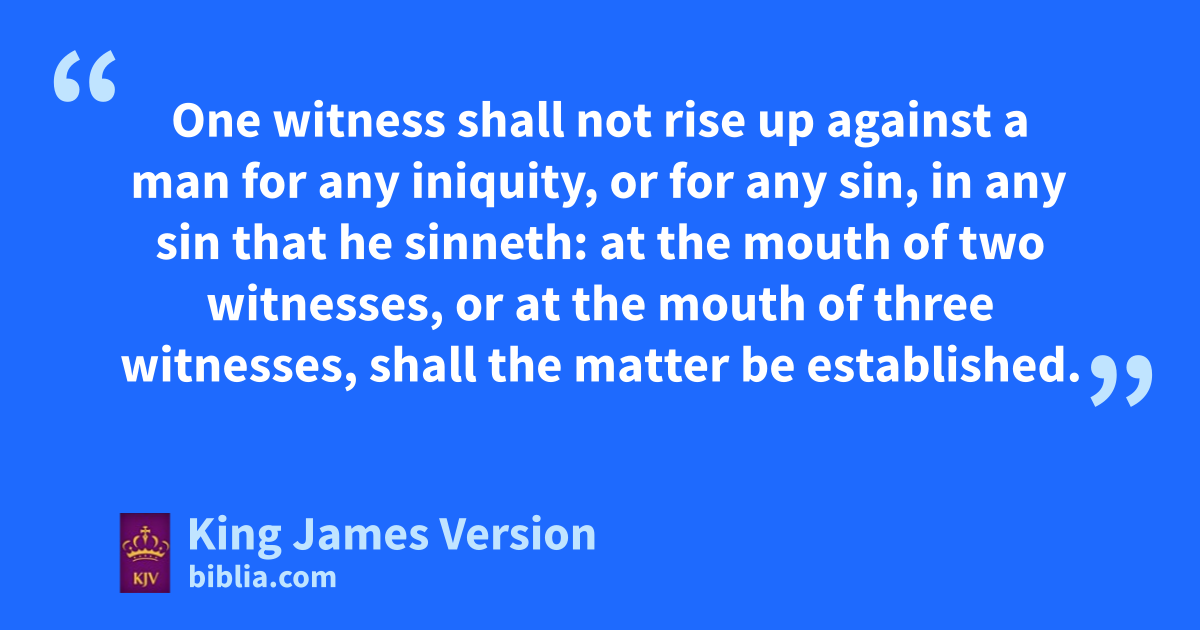 14 kThou shalt not remove thy neighbour’s landmark, which they of old time have set in thine inheritance, which thou shalt inherit in the land that the Lord thy God giveth thee to possess it. 15 One witness shall not rise up against a man for any iniquity, or for any sin, in any sin that he sinneth: lat the mouth of two witnesses, or at the mouth of three witnesses, shall the matter be established. 16 If ma false witness rise up against any man to testify against him ||that which is wrong; 17 Then both the men, between whom the controversy is, shall stand before the Lord, nbefore the priests and the judges, which shall be in those days; 18 And the judges shall make odiligent inquisition: and, behold, if the witness be a false witness, and hath testified falsely against his brother; 19 pThen shall ye do unto him, as he had thought to have done unto his brother: so qshalt thou put the evil away from among you. 20 And those which remain rshall hear, and fear, and shall henceforth commit no more any such evil among you. 21 sAnd thine eye shall not pity; but tlife shall go for life, eye for eye, tooth for tooth, hand for hand, foot for foot.