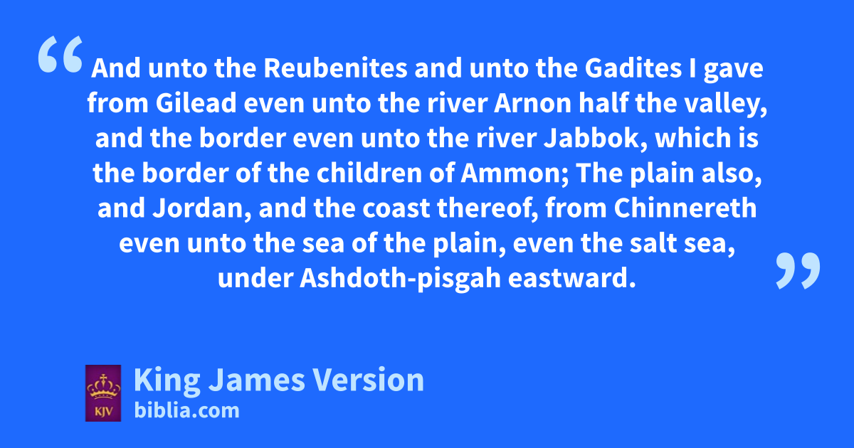 3 Then we turned, and went up the way to Bashan: and aOg the king of Bashan came out against us, he and all his people, to battle bat Edrei. 2 And the Lord said unto me, Fear him not: for I will deliver him, and all his people, and his land, into thy hand; and thou shalt do unto him as thou didst unto cSihon king of the Amorites, which dwelt at Heshbon. 3 So the Lord our God delivered into our hands Og also, the king of Bashan, and all his people: dand we smote him until none was left to him remaining. 4 And we took all his cities at that time, there was not a city which we took not from them, threescore cities, eall the region of Argob, the kingdom of Og in Bashan. 5 All these cities were fenced with high walls, gates, and bars; beside funwalled towns a great many. 6 And we gutterly destroyed them, as we did unto Sihon king hof Heshbon, utterly destroying ithe men, women, and children, of every city. 7 But all the cattle, and the spoil of the cities, we took for a prey to ourselves. 8 And we took at that time out of the hand of the two kings of the Amorites the land that was on this side Jordan, from the river of Arnon unto mount Hermon; 9 (Which jHermon the Sidonians call kSirion; and the Amorites call it lShenir;) 10 All the cities of mthe plain, and all Gilead, and all Bashan, unto nSalchah and Edrei, cities of the kingdom of Og in Bashan. 11 For only Og king of Bashan remained of the remnant of ogiants; behold, his bedstead was a bedstead of iron; is it not in pRabbath of the children of Ammon? nine cubits was the length thereof, and four cubits the breadth of it, after the cubit qof a man. 12 And this land, which we possessed at that time, rfrom Aroer, which is by the river Arnon, and half mount Gilead, and sthe cities thereof, gave I unto the Reubenites and to the Gadites. 13 And tthe rest of Gilead, and all Bashan, being the kingdom of Og, gave I unto the half tribe of Manasseh; uall the region of Argob, with all Bashan, which was called the land of xgiants. 14 yJair the son of Manasseh took all the country of Argob unto the coasts of zGeshuri and Maachathi; and called them after his own name, yBashan-havoth-jair, unto this day. 15 aAnd I gave Gilead unto Machir. 16 And unto the Reubenites band unto the Gadites I gave from Gilead even unto the river Arnon half the valley, and the border even unto the river Jabbok, cwhich is the border of the children of Ammon; 17 The plain also, and Jordan, and the coast thereof, from dChinnereth eeven unto the sea of the plain, feven the salt sea, ||under Ashdoth-pisgah eastward.