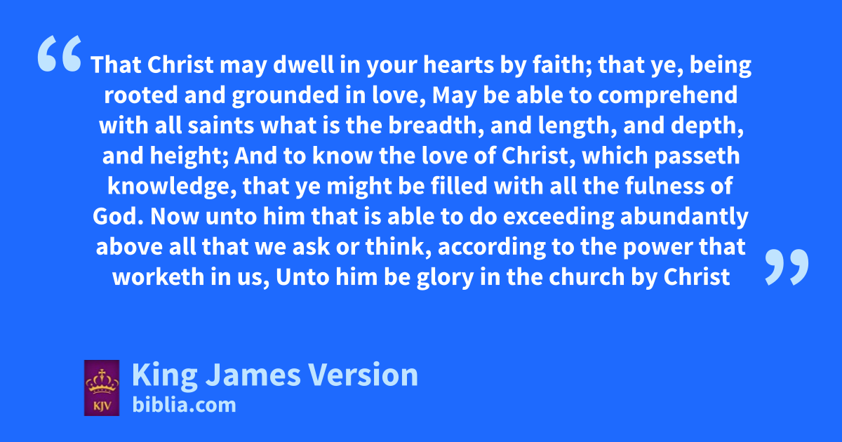 3 For this cause I Paul, athe prisoner of Jesus Christ bfor you cGentiles, 2 If ye have heard of dthe dispensation eof the grace of God which is given me cto you-ward: 3 fHow that gby revelation hhe made known unto me the mystery; i(as I wrote ||afore in few words, 4 Whereby, when ye read, kye may understand my knowledge in lthe mystery of Christ) 5 hWhich in other ages was not made known unto the sons of men, as it is now revealed unto his holy mapostles and prophets by the Spirit; 6 That the Gentiles should be nfellowheirs, and oof the same body, and ppartakers nof his promise in Christ by the gospel: 7 qWhereof I was made ra minister, according to the gift of ethe grace of God given unto me sby the effectual working of his power. 8 Unto me, twho am less than the least of all saints, eis this grace given, that I should preach camong the Gentiles the uunsearchable wriches of Christ; 9 And hto make all men see what is the fellowship of the mystery, hwhich from the beginning of the world hath been hid in God, xwho created all things by Jesus Christ: 10 To the intent that ynow unto zthe principalities and powers ain heavenly places might be known by the church the manifold bwisdom of God, 11 cAccording to the eternal purpose which he purposed in Christ Jesus our Lord: 12 In whom we have dboldness and eaccess with fconfidence by gthe faith of him. 13 Wherefore I desire that ye hfaint not iat my tribulations kfor you, lwhich is your glory. 14 mFor this cause nI bow my knees unto the Father of our Lord Jesus Christ, 15 Of whom othe whole family pin heaven and earth qis named, 16 That he would grant you, according to rthe riches of his glory, sto be strengthened with might by his Spirit in tthe inner man; 17 uThat Christ may dwell in your hearts by faith; that ye, wbeing rooted and xgrounded in love, 18 May be able to ycomprehend with all saints what is the breadth, and length, and zdepth, and height; 19 And to know the love of Christ, awhich passeth knowledge, that bye might be filled with all cthe fulness of God. 20 dNow unto him that is able to do exceeding abundantly above all that we ask or think, eaccording to the power that worketh in us, 21 fUnto him be glory in the church by Christ Jesus gthroughout all ages, world without end. Amen.