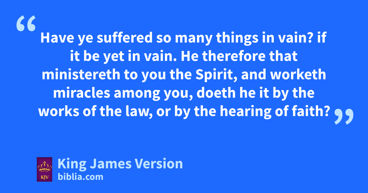 3 O foolish aGalatians, who hath bewitched you, bthat ye should not obey bcthe truth, before whose eyes Jesus Christ dhath been evidently set forth, crucified among you? 2 This only would I learn of you, eReceived ye the Spirit by the works of the law, or fby the hearing of efaith? 3 Are ye so foolish? having gbegun in the Spirit, are ye now ghmade perfect by the flesh? 4 iHave ye suffered ||so many things in vain? if it be yet in vain. 5 He therefore that ministereth to you the Spirit, and kworketh miracles among you, doeth he it by the works of the law, or by the hearing of faith? 6 Even as lAbraham believed God, and it was ||accounted to him for righteousness. 7 Know ye therefore that mthey which are of faith, nthe same are the children of Abraham. 8 And othe scripture, foreseeing that God pwould justify the heathen through faith, preached before the gospel unto Abraham, saying, qIn thee shall all nations be blessed. 9 So then mthey which be of faith are blessed with faithful Abraham. 10 For as many as are of the works of the law rare under the curse: for it is written, sCursed is every one that continueth not in all things which are written in the book of the law to do them. 11 But tthat no man is justified by the law in the sight of God, it is evident: for, uThe just shall live by faith. 12 And the law is not of faith: but, wThe man that doeth them shall live in them. 13 xChrist hath yredeemed us from the curse of the law, being made a curse for us: for it is written, zCursed is every one that ahangeth on a tree: 14 That the blessing of Abraham bmight come on the Gentiles through Jesus Christ; that we might creceive dthe promise of the Spirit through faith. 15 Brethren, I speak eafter the manner of men; Though it be but a man’s ||fcovenant, yet if it be gconfirmed, no man hdisannulleth, or addeth thereto. 16 Now hhto Abraham and his seed were ithe promises made. He saith not, And to seeds, as of many; but jas of one, kAnd to thy seed, which is Christ. 17 And this I say, that the covenant, that was confirmed before of God in Christ, the law, lwhich was four hundred and thirty years after, cannot mdisannul, that it should nomake the promise of none effect. 18 For if othe inheritance be of the law, it is no more of promise: but God gave it to Abraham by promise.