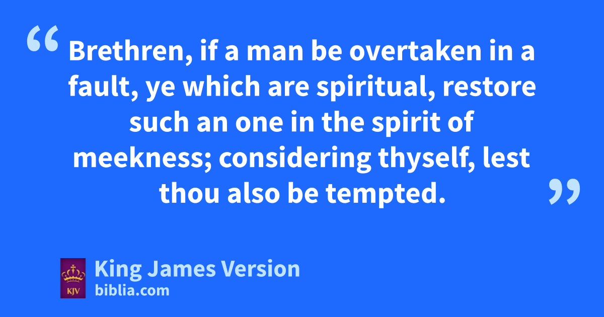 6 Brethren, a||if a man be overtaken in a fault, ye bwhich are spiritual, restore such an one cin the spirit of meekness; dconsidering thyself, lest thou also ebe tempted. 2 fBear ye one another’s burdens, and gso fulfil hthe law of Christ. 3 For iif a man think himself to be something, kwhen he is nothing, lhe deceiveth himself. 4 But let every man mprove his own work, and then nshall he have orejoicing in himself alone, and not in another. 5 For pevery man shall qbear his own burden. 6 Let him that is rtaught in the word scommunicate unto him that teacheth in all good things. 7 tBe not deceived; uGod is not vmocked: for pwwhatsoever a man soweth, that shall he also reap. 8 For xhe that soweth to his flesh shall of the flesh reap ycorruption; but xhe that soweth to the Spirit shall of the Spirit reap life everlasting. 9 And zlet us not abe weary in well doing: for bin due season we shall reap, cif we faint not. 10 dAs we have therefore opportunity, elet us do good unto all men, eeespecially unto them who are of fthe household of faith.