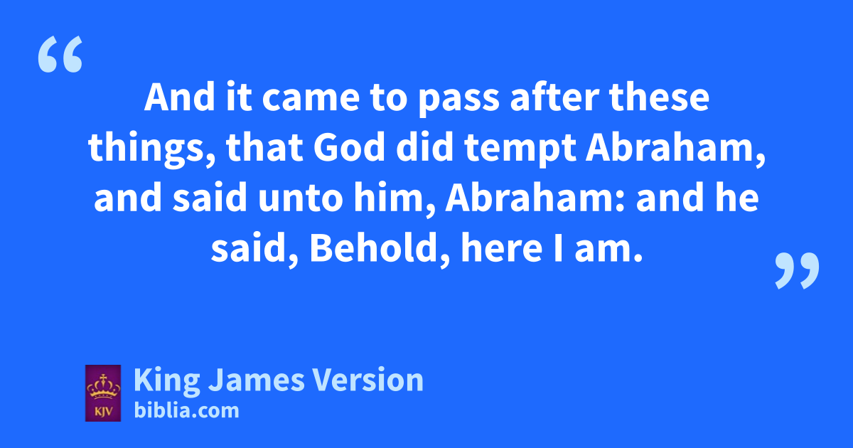 22 *And it came to pass after these things, that aGod did tempt Abraham, and said unto him, Abraham: and he said, †Behold, here I am. 2 And he said, Take now thy son, thine only son Isaac, whom thou lovest, and get thee into the land of bMoriah; and offer him there for a burnt offering upon one of the mountains which I will tell thee of. 3 And Abraham rose up early in the morning, and saddled his ass, and took two of his young men with him, and Isaac his son, and clave the wood for the burnt offering, and rose up, and went unto the place of which God had told him. 4 Then on the third day Abraham lifted up his eyes, and saw the place afar off. 5 And Abraham said unto his young men, Abide ye here with the ass; and I and the lad will go yonder and worship, and come again to you. 6 And Abraham took the wood of the burnt offering, and claid it upon Isaac his son; and he took the fire in his hand, and a knife; and they went both of them together. 7 And Isaac spake unto Abraham his father, and said, My father: and he said, †Here am I, my son. And he said, Behold the fire and the wood: but where is the ||lamb for a burnt offering? 8 And Abraham said, My son, God will provide himself a lamb for a burnt offering: so they went both of them together. 9 And they came to the place which God had told him of; and Abraham built an altar there, and laid the wood in order, and bound Isaac his son, and dlaid him on the altar upon the wood. 10 And Abraham stretched forth his hand, and took the knife to slay his son. 11 And the angel of the Lord called unto him out of heaven, and said, Abraham, Abraham: and he said, Here am I. 12 And he said, eLay not thine hand upon the lad, neither do thou any thing unto him: for fnow I know that thou fearest God, seeing thou hast not withheld thy son, thine only son from me. 13 And Abraham lifted up his eyes, and looked, and behold behind him a ram caught in a thicket by his horns: and Abraham went and took the ram, and offered him up for a burnt offering in the stead of his son. 14 And Abraham called the name of that place ||Jehovah-jireh: as it is said to this day, In the mount of the Lord it shall be seen. 15 And the angel of the Lord called unto Abraham out of heaven the second time, 16 And said, gBy myself have I sworn, saith the Lord, for because thou hast done this thing, and hast not withheld thy son, thine only son: 17 That in blessing I will bless thee, and in multiplying I will multiply thy seed has the stars of the heaven, iand as the sand which is upon the sea †shore; and kthy seed shall possess lthe gate of his enemies; 18 mAnd in thy seed shall all the nations of the earth be blessed; nbecause thou hast obeyed my voice. 19 So Abraham returned unto his young men, and they rose up and went together to oBeer-sheba; and Abraham dwelt at Beer-sheba.