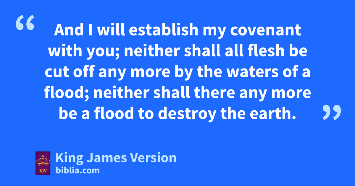 8 And God spake unto Noah, and to his sons with him, saying, 9 And I, ibehold, I establish my covenant with you, and with your seed after you; 10 And with every living creature that is with you, of the fowl, of the cattle, and of every beast of the earth with you; from all that go out of the ark, to every beast of the earth. 11 And kI will establish my covenant with you; neither shall all flesh be cut off any more by the waters of a flood; neither shall there any more be a flood to destroy the earth. 12 And God said, lThis is the token of the covenant which I make between me and you and every living creature that is with you, for perpetual generations: 13 I do set mmy bow in the cloud, and it shall be for a token of a covenant between me and the earth. 14 And it shall come to pass, when I bring a cloud over the earth, that nthe bow shall be seen in the cloud: 15 And oI will remember my covenant, which is between me and you and every living creature of all flesh; and the waters shall no more become a flood to destroy all flesh. 16 And the bow shall be in the cloud; and I will look upon it, that I may remember pthe everlasting covenant between God and every living creature of all flesh that is upon the earth. 17 And God said unto Noah, This is the token of the covenant, which I have established between me and all flesh that is upon the earth.