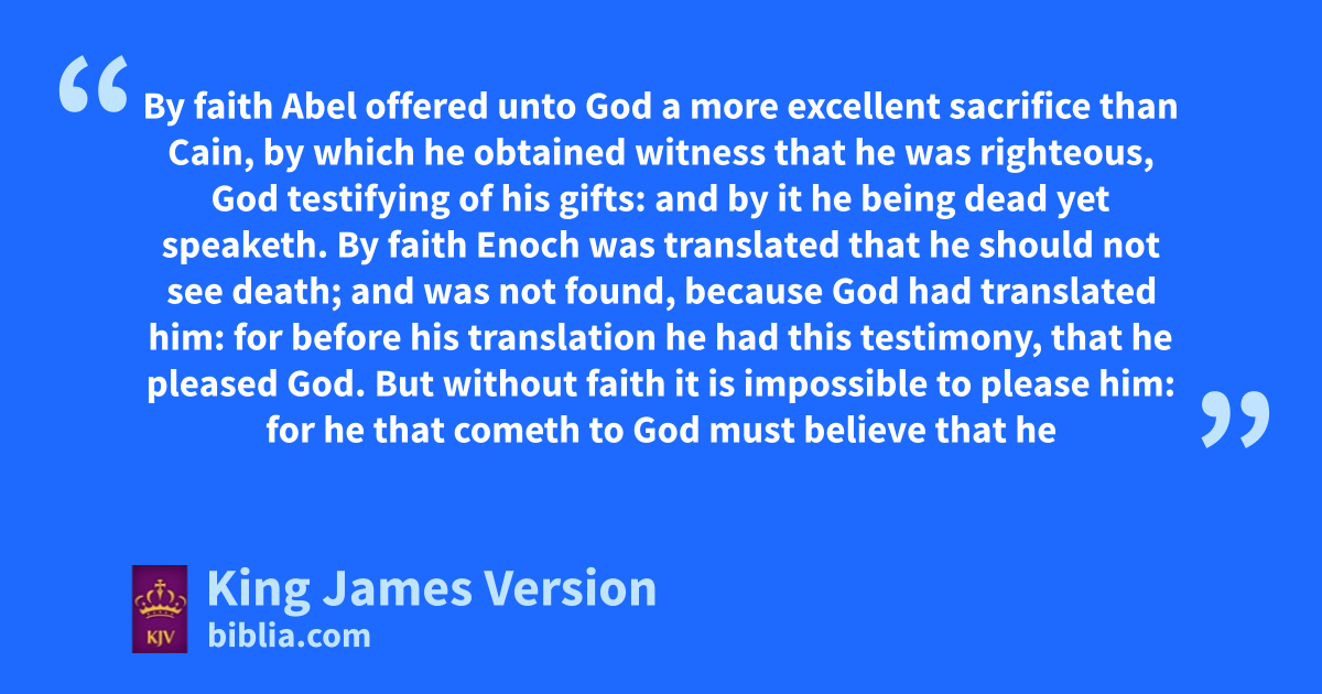 11 Now faith is the ||substance of things hoped for, athe evidence of bthings not seen. 2 For cby it dthe elders eobtained a good report. 3 Through faith we understand that fthe worlds were gframed by hthe word of God, so that things which are seen iwere not made of things which do appear. 4 By faith jAbel offered unto God a more excellent ksacrifice than Cain, by which he eobtained witness that he was righteous, God testifying of his kgifts: and by it he lbeing dead ||yet mspeaketh. 5 By faith nEnoch was translated that he should not osee death; pand was not found, because God had translated him: for before his translation he ehad this testimony, nqthat he pleased God. 6 But without faith it is impossible to please him: for rhe that cometh to God must believe that he is, and that he is sa rewarder of them that tdiligently seek him. 7 By faith uNoah, vbeing warned of God of things not seen as yet, ||wmoved with fear, xprepared an ark yto the saving of his house; by the which zhe condemned the world, and became heir of athe righteousness which is by faith. 8 By faith bAbraham, when he was called to go out into a place which he should after receive for an inheritance, obeyed; and he went out, not knowing whither he went. 9 By faith he csojourned in the land dof promise, as in a strange country, edwelling in tabernacles fwith Isaac and Jacob, gthe heirs with him of the same promise: 10 For he looked for ha city iwhich hath foundations, kwhose builder and maker is God. 11 Through faith also lSara herself received strength to conceive seed, and mwas delivered of a child when she was past age, nbecause she judged ohim faithful pwho had promised. 12 Therefore sprang there even of one, and him qas good as dead, so many rsas the stars of the sky in multitude, and sas the sand which is by the sea shore innumerable. 13 These all died †in faith, tnot having received the promises, but uhaving seen them afar off, and were persuaded of them, and vembraced them, and wconfessed that they were xstrangers and ypilgrims on the earth. 14 For they that say such things declare plainly that they seek a country. 15 And truly, if they had been mindful of that country from whence they came out, they might have had opportunity to have returned. 16 But now they desire za better country, that is, an heavenly: wherefore zzGod is not ashamed ato be called their God: for he hath bprepared for them ca city. 17 By faith dAbraham, when he was tried, offered up Isaac: and he that had received ethe promises offered up fhis only begotten son, 18 ||Of whom it was said, ffThat in Isaac shall thy seed be called: 19 Accounting that God gwas able to raise him up, even from the dead; from whence also he received him in a hfigure. 20 By faith iIsaac blessed Jacob and Esau concerning things to come. 21 By faith kJacob, when he was a dying, kblessed both the sons of Joseph; and lworshipped, leaning upon the top of mhis staff. 22 By faith nJoseph, when he died, ||made mention of the departing of the children of Israel; and ogave commandment concerning his bones. 23 By faith pMoses, when he was born, was hid three months of his parents, because they saw he was a qproper child; and they were not afraid of rthe king’s commandment. 24 By faith Moses, when he was come to years, refused to be called sthe son of Pharaoh’s daughter; 25 tChoosing rather to suffer affliction with the people of God, than to enjoy the pleasures of sin ufor a season; 26 Esteeming vthe reproach ||of Christ greater riches than the treasures in Egypt: for he had respect unto wthe recompence of the reward. 27 By faith xhe forsook Egypt, not fearing the wrath of the king: for he yendured, zas seeing him who is ainvisible. 28 Through faith bhe ckept the passover, and dthe sprinkling of blood, lest ehe that destroyed fthe firstborn should touch them. 29 By faith gthey passed through the Red sea as by dry land: which the Egyptians assaying to do were drowned. 30 By faith hthe walls of iJericho fell down, after they were compassed about seven days. 31 By faith jthe harlot Rahab perished not with them ||that kbelieved not, lwhen she had received the spies mwith peace.