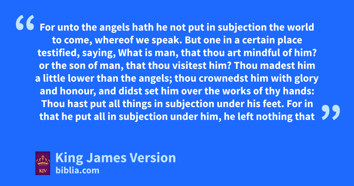 5 For nunto the angels hath he not put in subjection othe world to come, whereof we speak. 6 But pone in a certain place qtestified, saying, rWhat is man, that thou art mindful of him? or the son of man, that thou visitest him? 7 Thou madest him ||a little lower than the angels; thou crownedst him with glory and honour, and didst set him over the works of thy hands: 8 sThou hast put all things in subjection under his feet. For in that he put all in subjection under him, he left nothing that is not put under him. But tnow we see not yet all things put under him. 9 But we see Jesus, uvwho was made a little lower than the angels ||vwfor the suffering of death, ucrowned with glory and honour; that he by the grace of God should xtaste death yfor every man. 10 zFor it became him, afor whom are all things, and bby whom are all things, in bringing cmany sons unto glory, to make dthe captain of their salvation eperfect through sufferings. 11 For both fhe that sanctifieth and gthey who are sanctified hare all of one: for which cause ihe is not ashamed to call them jbrethren, 12 Saying, kI will declare thy name unto my brethren, in the midst of lthe church will I sing praise unto thee. 13 And again, mI will put my trust in him. And again, nBehold I and the children owhich God hath given me. 14 Forasmuch then as the children are partakers of pflesh and blood, qhe also himself likewise took part of the same; that rthrough death he might sdestroy him that had the power of death, tthat is, the devil; 15 And deliver them who uthrough vfear of death were all their lifetime wsubject to vbondage. 16 For verily †he took not on him the nature of angels; but he took on him the seed of Abraham. 17 Wherefore xxin all things it behoved him qto be made like unto his brethren, that he might be ya merciful and faithful high priest zin things pertaining to God, to amake reconciliation for the sins of the people. 18 yFor in that he himself hath suffered bbeing tempted, he is able to succour them that are tempted.