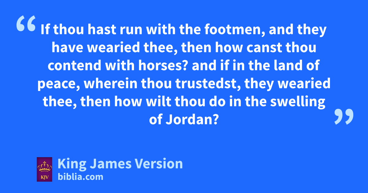 5 If thou hast run with the footmen, and they have wearied thee, then how canst thou ppcontend with horses? and if in the land of peace, wherein thou trustedst, they wearied thee, then how wilt thou do in qthe swelling of Jordan? 6 For even rthy brethren, and the house of thy father, even they have edealt treacherously with thee; yea, ||they have called a multitude after thee: sbelieve them not, though they speak †fair words unto thee.