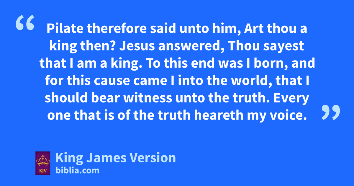 28 qThen led they Jesus from rCaiaphas unto ||the hall of judgment: and it was early; and they themselves went not into the judgment hall, slest they should be defiled; but tthat they might eat the passover. 29 uPilate then went out unto them, and said, What accusation bring ye against this man? 30 They answered and said unto him, If he were not a xmalefactor, we would not have delivered him up unto thee. 31 Then said Pilate unto them, Take ye him, and yjudge him according to your law. The Jews therefore said unto him, It is not lawful for us to put any man to death: 32 That the saying of Jesus might be fulfilled, which he spake, zsignifying what death he should die. 33 Then Pilate entered into the judgment hall again, and called Jesus, and said unto him, aArt thou the King of the Jews? 34 Jesus answered him, Sayest thou this thing of thyself, or did others tell it thee of me? 35 Pilate answered, Am I a Jew? Thine own nation and the chief priests have delivered thee unto me: what hast thou done? 36 Jesus answered, bMy kingdom is not cof this world: if my kingdom were cof this world, then would dmy servants efight, that I should not fbe delivered to the Jews: but now is my kingdom not from hence. 37 Pilate therefore said unto him, Art thou a king then? Jesus answered, gThou sayest that I am a king. hTo this end was I born, and for this cause came I into the world, that I should ibear witness unto kthe truth. lEvery one that is of the truth heareth my voice. 38 Pilate saith unto him, What is truth? And when he had said this, he mwent out again unto the Jews, and saith unto them, nI find in him no fault at all. 39 oBut ye have a custom, that I should release unto you one at the passover: will ye therefore that I release unto you the King of the Jews? 40 Then cried they all pagain, saying, qNot this man, but Barabbas. Now Barabbas was ra robber.