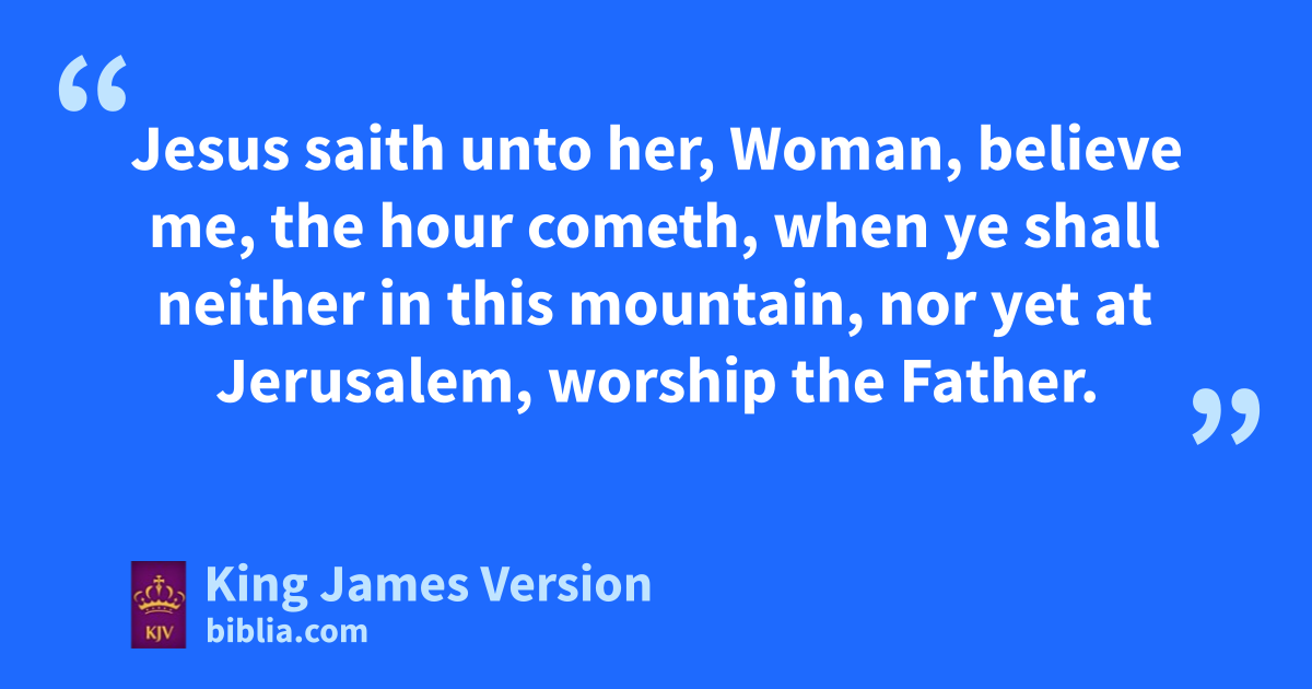 4 When therefore the Lord knew how the Pharisees had heard that Jesus made and abaptized more disciples than John, 2 (Though bJesus himself baptized not, but his disciples,) 3 He left cJudaea, and departed dagain into Galilee. 4 And he emust needs go through fSamaria. 5 Then cometh he to a city of Samaria, which is called gSychar, near to the parcel of ground hthat Jacob gave to his son Joseph. 6 Now Jacob’s well was there. Jesus therefore, being wearied iwith his journey, sat kthus on the well: and it was about lthe sixth hour. 7 There cometh a woman of Samaria to draw water: Jesus saith unto her, Give me to drink. 8 (For his disciples were gone away unto mthe city to buy meat.) 9 Then saith the woman of Samaria unto him, How is it that thou, being a Jew, askest drink of me, which am a woman of Samaria? for nthe Jews have no dealings with the Samaritans. 10 Jesus answered and said unto her, If thou knewest the gift of God, and who it is that saith to thee, Give me to drink; thou wouldest have asked of him, and he would have given thee oliving water. 11 The woman saith unto him, Sir, thou hast nothing to draw with, and the well is deep: from whence then hast thou that living water? 12 Art thou greater than our father Jacob, which gave us the well, and drank thereof himself, and his children, and his cattle? 13 Jesus answered and said unto her, Whosoever drinketh of this water shall thirst again: 14 But pwhosoever drinketh of the water that I shall give him shall never thirst; but the water that I shall give him shall be in him a well of water springing up into ppeverlasting life. 15 The woman saith unto him, qSir, give me this water, that I thirst not, neither come hither to draw. 16 Jesus saith unto her, Go, rcall thy husband, and come hither. 17 The woman answered and said, I have no husband. Jesus said unto her, Thou hast well said, I have no husband: 18 For thou hast had five husbands; and he whom thou now hast is not thy husband: in that saidst thou truly. 19 The woman saith unto him, Sir, I perceive that thou art sa prophet. 20 Our fathers worshipped in tthis mountain; and ye say, that in uJerusalem is the place where men ought to worship. 21 Jesus saith unto her, Woman, believe me, wthe hour cometh, xwhen ye shall neither in this mountain, nor yet at Jerusalem, worship ythe Father. 22 Ye worship zye know not what: we know what we worship: afor salvation is of the Jews. 23 But wthe hour cometh, and now is, when the true worshippers shall worship the Father in bspirit and in ctruth: for the Father dseeketh such to worship him. 24 eGod is a Spirit: and they that worship him must worship him in bspirit and in ctruth. 25 The woman saith unto him, I know that fMessias cometh, which is called Christ: when he is come, ghe will htell us all things. 26 Jesus saith unto her, iI that speak unto thee am he.