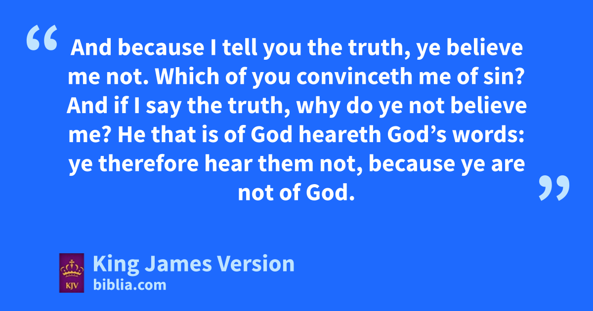 31 Then said Jesus to those Jews which believed on him, lIf ye continue in my word, then lare ye my disciples indeed; 32 And ye shall know mthe truth, and the truth nshall make you free. 33 They answered him, oWe be Abraham’s seed, and were never in bondage to any man: how sayest thou, pYe shall be made free? 34 Jesus answered them, Verily, verily, I say unto you, qWhosoever committeth sin is the servant of sin. 35 And rthe servant abideth not in the house for ever: but sthe Son abideth ever. 36 If tthe Son therefore nshall make you free, ye shall be free indeed. 37 I know that oye are Abraham’s useed; but wye seek to kill me, because my word hath no place in you. 38 I speak that which I have xseen with my Father: and ye do that which ye have seen with yyour father. 39 They answered and said unto him, oAbraham is our father. Jesus saith unto them, zIf ye were Abraham’s uchildren, ye would do the works of Abraham. 40 But now aye seek to kill me, a man that hath told you the truth, which I have bheard of God: this did not Abraham. 41 Ye do the deeds of your father. Then said they to him, cWe be not born of fornication; we have done Father, even God. 42 Jesus said unto them, If God were your Father, eye would love me: for fI proceeded forth and came from God; gneither came I of myself, but hhe sent me. 43 iWhy do ye not understand my speech? even because ye cannot jhear my word. 44 kYe are of lyour father the devil, and the lusts of your father ye will do. He was ma murderer from the beginning, and abode not in the truth, because there is no truth in him. When nhe speaketh a lie, he speaketh of ohis own: for he is a liar, and the father of it. 45 And because I tell you the truth, ye believe me not. 46 pWhich of you qconvinceth me of rsin? And if I say the truth, why do ye not believe me? 47 sHe that is of God jheareth God’s words: ye therefore jhear them not, because tye are not of God. 48 Then answered uthe Jews, and said unto him, Say we not well that thou art a xSamaritan, and yhast a devil? 49 Jesus answered, I have not a devil; but I honour my Father, and zye do dishonour me. 50 And I seek not amine own glory: there is one that seeketh and judgeth. 51 Verily, verily, I say unto you, bIf a man keep my saying, che shall never see death. 52 Then said uthe Jews unto him, Now we know that thou hast a devil. dAbraham is dead, and the prophets; and thou sayest, bIf a man keep my saying, he shall never etaste of death. 53 Art thou greater than our father Abraham, which is dead? and the prophets are dead: whom makest thou thyself? 54 Jesus answered, fIf I honour myself, my honour is nothing: git is my Father that honoureth me; of whom ye say, that he is your God: 55 Yet hye have not known him; ibut I know him: and if I should say, I know him not, I shall be ja liar like unto you: but I know him, and kkeep his saying. 56 Your father Abraham lrejoiced to see mmy day: and he saw it, and was glad. 57 Then said uthe Jews unto him, Thou art not yet fifty years old, and hast thou seen Abraham? 58 Jesus said unto them, Verily, verily, I say unto you, Before Abraham was, nI am. 59 Then otook they up stones to cast at him: but Jesus phid himself, and qwent out of the temple, rgoing through the midst of them, and so passed by.