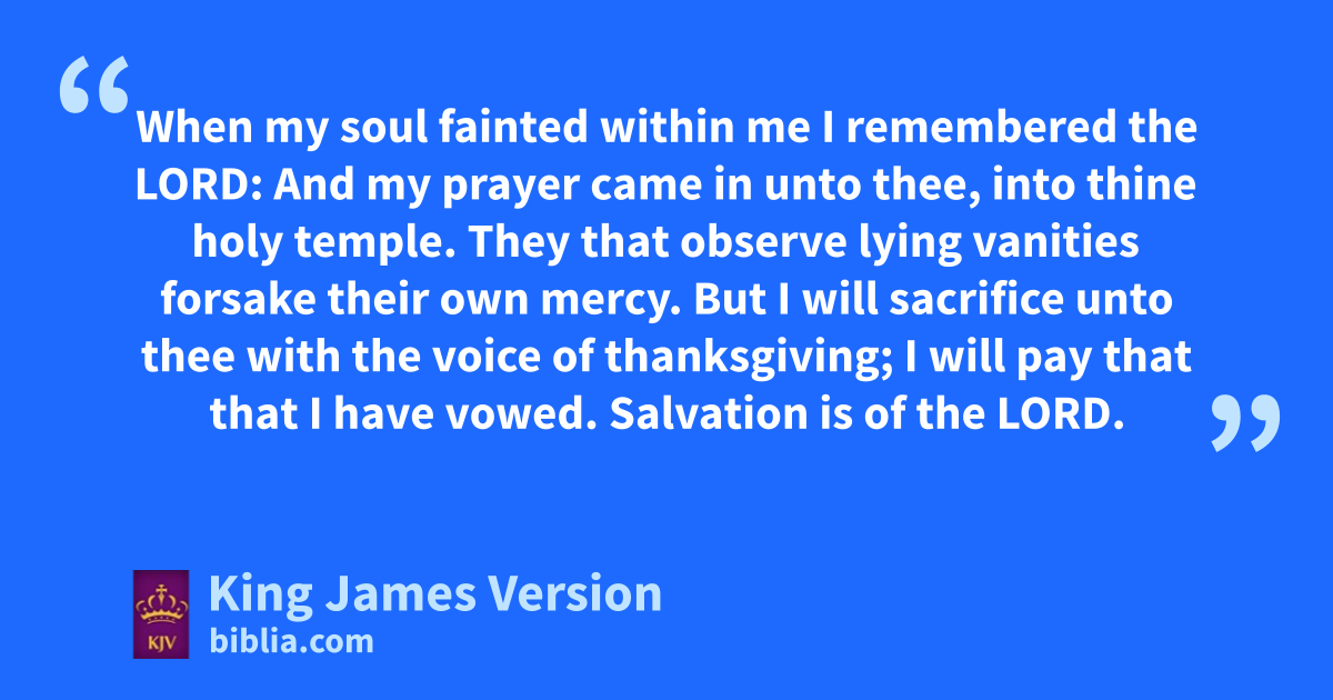 2 Then Jonah prayed unto the Lord his God out of the fish’s belly, 2 And said,