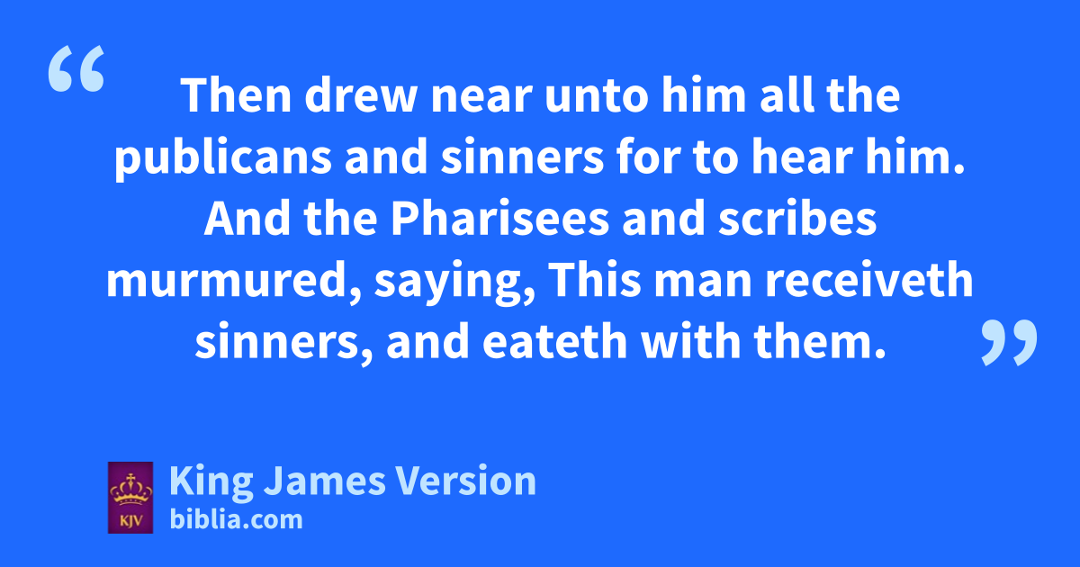 15 Then drew near unto him aall bthe publicans and sinners for to hear him. 2 And the Pharisees and scribes cmurmured, saying, This man receiveth sinners, and eateth with them. 3 And he spake this parable unto them, saying, 4 dWhat man of you, having an hundred sheep, eif he lose one of them, doth not leave the ninety and nine fin the wilderness, and ggo after that which is lost, until he find it? 5 And when he hath found it, hhe layeth it on his shoulders, rejoicing. 6 And when he cometh home, he calleth together his friends and neighbours, saying unto them, Rejoice with me; for I have found imy sheep which was lost. 7 I say unto you, that likewise joy shall be in heaven over one sinner that repenteth, more than over ninety and nine kjust persons, which need no repentance.