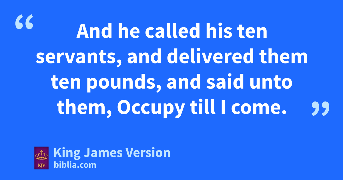 11 And as they heard these things, he radded and spake a parable, because he was nigh to Jerusalem, and because sthey thought that the kingdom of God should immediately appear. 12 He said therefore, tA certain unobleman wwent into a far country to receive for himself a kingdom, and to return. 13 And he called his xten servants, and delivered them ten ||pounds, and said unto them, Occupy till I come. 14 But yhis citizens hated him, and sent a message after him, saying, We will not have this man to reign over us. 15 And it came to pass, that when he was returned, having received the kingdom, then he commanded these servants to be called unto him, to whom he had given the †money, that he might know how much every man had gained by trading. 16 Then came the first, saying, Lord, thy pound hath gained ten pounds. 17 And he said unto him, Well, thou good servant: because thou hast been zfaithful in aa very little, have thou authority over ten cities. 18 And the second came, saying, Lord, thy pound hath gained five pounds. 19 And he said likewise to him, Be thou also over five cities. 20 And another came, saying, Lord, behold, here is thy pound, which I have kept laid up in a bnapkin: 21 cFor I feared thee, because thou art an daustere man: thou takest up that thou layedst not down, and reapest that thou didst not sow. 22 And he saith unto him, eOut of thine own mouth will I judge thee, thou wicked servant. fThou knewest that I was an daustere man, taking up that I laid not down, and reaping that I did not sow: 23 Wherefore then gavest not thou my money into gthe bank, that at my coming I might have hrequired imine own with usury? 24 And he said unto them that stood by, Take from him the pound, and give it to him that hath ten pounds. 25 (And they said unto him, Lord, he hath ten pounds.) 26 For I say unto you, kThat unto every one which hath shall be given; and from him that hath not, even that he hath shall be taken away from him. 27 But those mine enemies, lwhich would not that I should reign over them, bring hither, and mslay them before me.