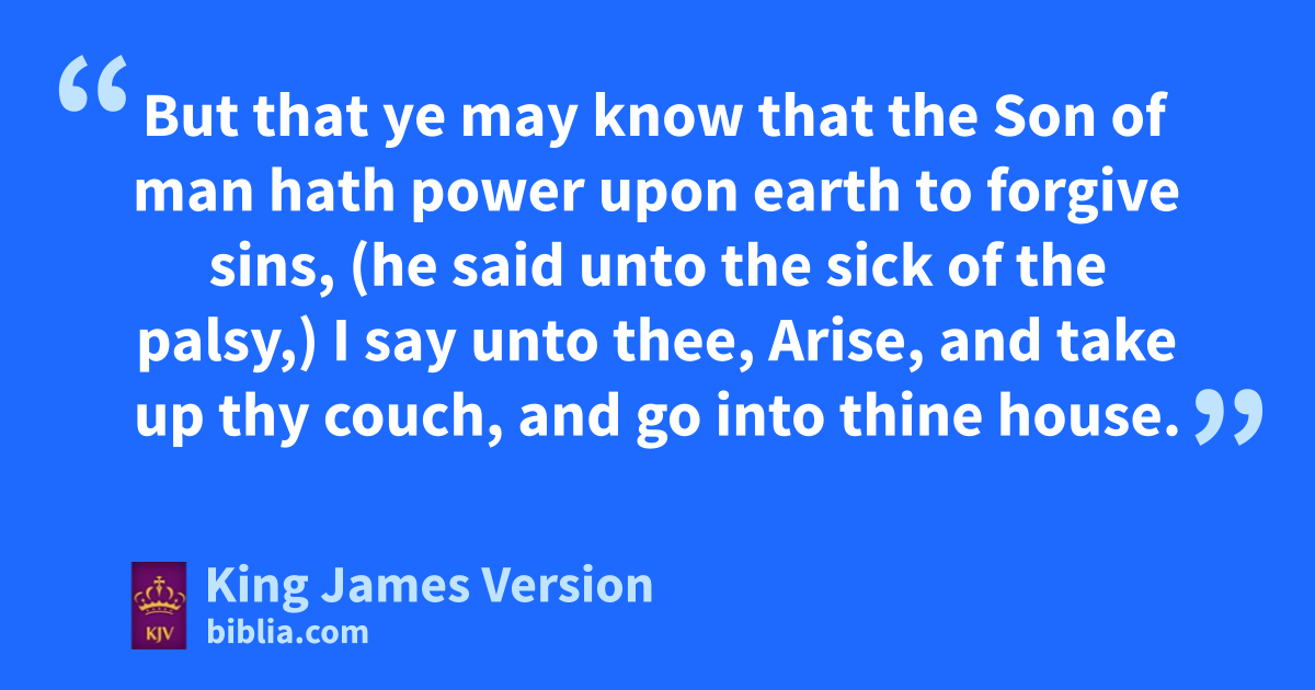 17 And it came to pass on a certain day, as he was teaching, that there were Pharisees and pdoctors of the law sitting by, which were come out of every town of Galilee, and Judaea, and Jerusalem: and the power of the Lord was present to heal them. 18 qAnd, behold, men brought in a bed a man which was taken with a palsy: and they sought means to bring him in, and to lay him before him. 19 And when they could not find by what way they might bring him in because of the multitude, they went upon rthe housetop, and let him down through the tiling with his couch into the midst before Jesus. 20 And when he saw their faith, he said unto him, Man, thy sins are forgiven thee. 21 And the scribes and the Pharisees began rrto reason, saying, Who is this which speaketh blasphemies? sWho can forgive sins, but God alone? 22 But when Jesus perceived their thoughts, he answering said unto them, What rrreason ye in your hearts? 23 Whether is easier, to say, Thy sins be forgiven thee; or to say, Rise up and walk? 24 But that ye may know that the Son of man hath power upon earth to forgive sins, (he said unto the sick of the palsy,) I say unto thee, Arise, and take up thy couch, and go into thine house. 25 And immediately he rose up before them, and took up tthat whereon he lay, and departed to his own house, uglorifying God. 26 And they were all amazed, and they uglorified God, and wwere filled with fear, saying, We have seen xstrange things to day.