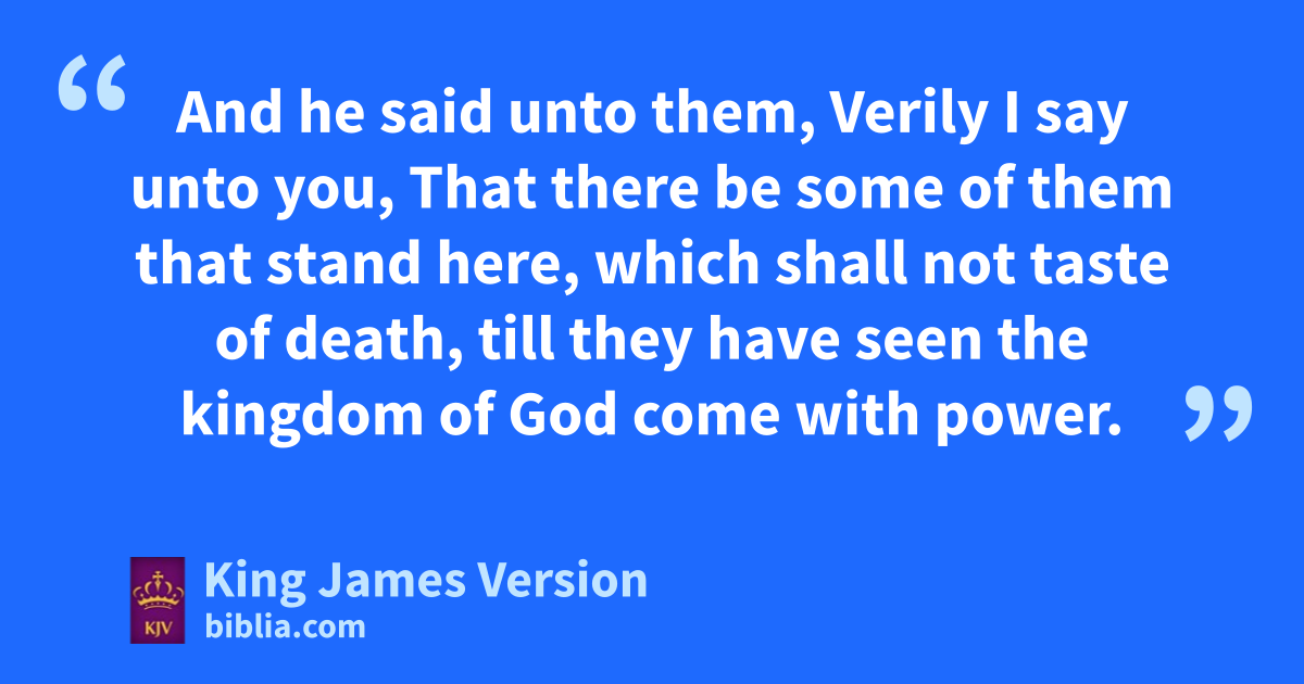9 And he said unto them, Verily I say unto you, That there be some of them that stand here, which shall not taste of death, till they have seen the kingdom of God come awith power.