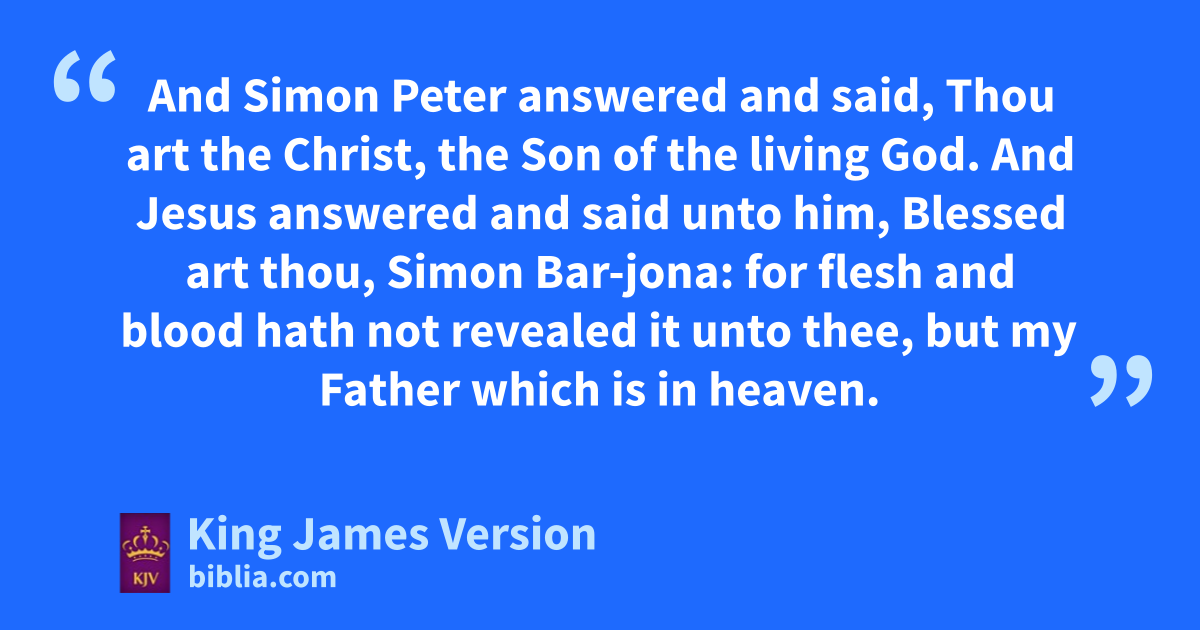13 nWhen Jesus came into the coasts of Caesarea Philippi, he asked his disciples, saying, Whom do men say that I the Son of man am? 14 And they said, Some say that thou art oJohn the Baptist: some, pElias; and others, qJeremias, or one of the prophets. 15 He saith unto them, But whom say ye that I am? 16 And Simon Peter answered and said, Thou art the Christ, rthe Son of sthe living God. 17 And Jesus answered and said unto him, tBlessed art thou, uSimon Bar-jona: for xflesh and blood hath not yrevealed it unto thee, but zmy Father which is in heaven. 18 And I say also unto thee, That thou art aPeter, and bupon this rock I will build my church; and cthe gates of hell shall not prevail against it. 19 And I will give unto thee dthe keys of the kingdom of heaven: and ewhatsoever thou shalt bind on earth shall be bound in heaven: and whatsoever thou shalt loose on earth shall be loosed in heaven. 20 fThen charged he his disciples that they should tell no man that he was Jesus the Christ.