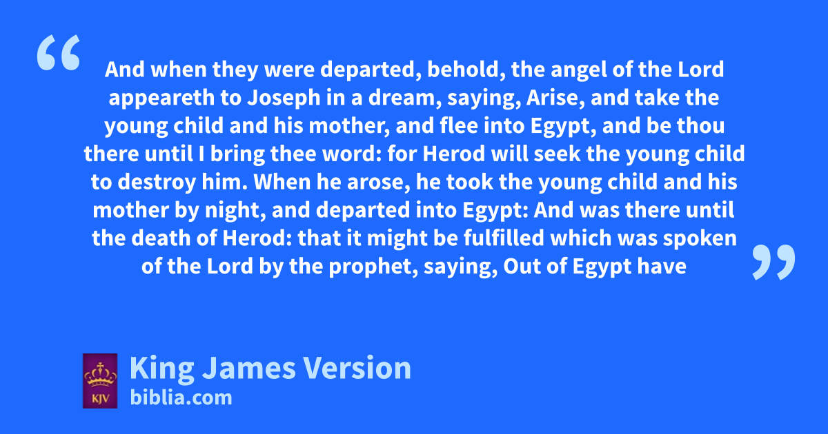 13 And when they were departed, behold, the angel of the Lord appeareth to Joseph min a dream, saying, Arise, and take the young child and his mother, and flee into Egypt, and be thou there until I bring thee word: for Herod will seek the young child to destroy him. 14 When he arose, he took the young child and his mother by night, and departed into Egypt: 15 And was there until the death of Herod: that it might be fulfilled which was spoken of the Lord by the prophet, saying, nOut of Egypt have I called my son. 16 Then Herod, when he saw that he was mocked of the wise men, was exceeding wroth, and sent forth, and slew all the children that were in Beth-lehem, and in all the coasts thereof, from two years old and under, according to the time which he had diligently inquired of the wise men. 17 Then was fulfilled that which was spoken by oJeremy the prophet, saying, 18 In pRama was there a voice heard, lamentation, and weeping, and great mourning, Rachel weeping for her children, and would not be comforted, because they are not.