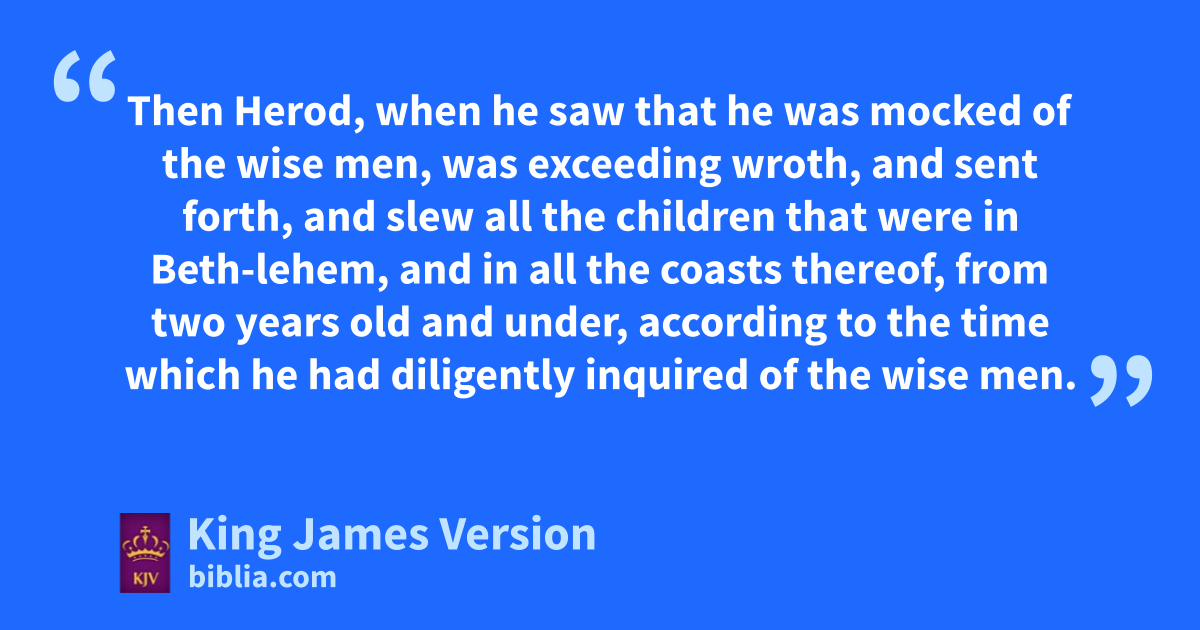 13 And when they were departed, behold, the angel of the Lord appeareth to Joseph min a dream, saying, Arise, and take the young child and his mother, and flee into Egypt, and be thou there until I bring thee word: for Herod will seek the young child to destroy him. 14 When he arose, he took the young child and his mother by night, and departed into Egypt: 15 And was there until the death of Herod: that it might be fulfilled which was spoken of the Lord by the prophet, saying, nOut of Egypt have I called my son. 16 Then Herod, when he saw that he was mocked of the wise men, was exceeding wroth, and sent forth, and slew all the children that were in Beth-lehem, and in all the coasts thereof, from two years old and under, according to the time which he had diligently inquired of the wise men. 17 Then was fulfilled that which was spoken by oJeremy the prophet, saying, 18 In pRama was there a voice heard, lamentation, and weeping, and great mourning, Rachel weeping for her children, and would not be comforted, because they are not.