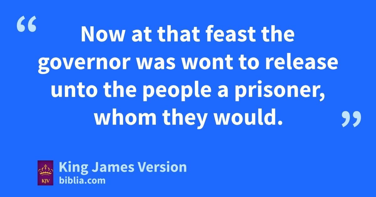 15 uNow at that feast the governor was wont to release unto the people xa prisoner, whom they would. 16 And they had then a ynotable prisoner, called Barabbas. 17 Therefore when they were gathered together, Pilate said unto them, Whom will ye that I release unto you? Barabbas, or Jesus which is called Christ? 18 For he knew that for envy they had delivered him. 19 When he was set down on zthe judgment seat, his wife sent unto him, saying, aHave thou nothing to do with that just man: for I have suffered many things this day bin a dream because of him. 20 But the chief priests and elders persuaded the multitude cthat they should ask Barabbas, and destroy Jesus. 21 The governor answered and said unto them, Whether of the twain will ye that I release unto you? They said, Barabbas. 22 Pilate saith unto them, What shall I do then with Jesus which is called Christ? They all say unto him, Let him be crucified. 23 And the governor said, Why, what evil hath he done? But they cried out the more, saying, Let him be crucified. 24 When Pilate saw that he could prevail nothing, but that rather da tumult was made, he etook water, and washed his hands before the multitude, saying, I am finnocent of the blood of this just person: see ye to it. 25 Then answered all the people, and said, gHis blood be on us, and on our children. 26 Then released he Barabbas unto them: and when he had hscourged Jesus, he delivered him to be crucified.