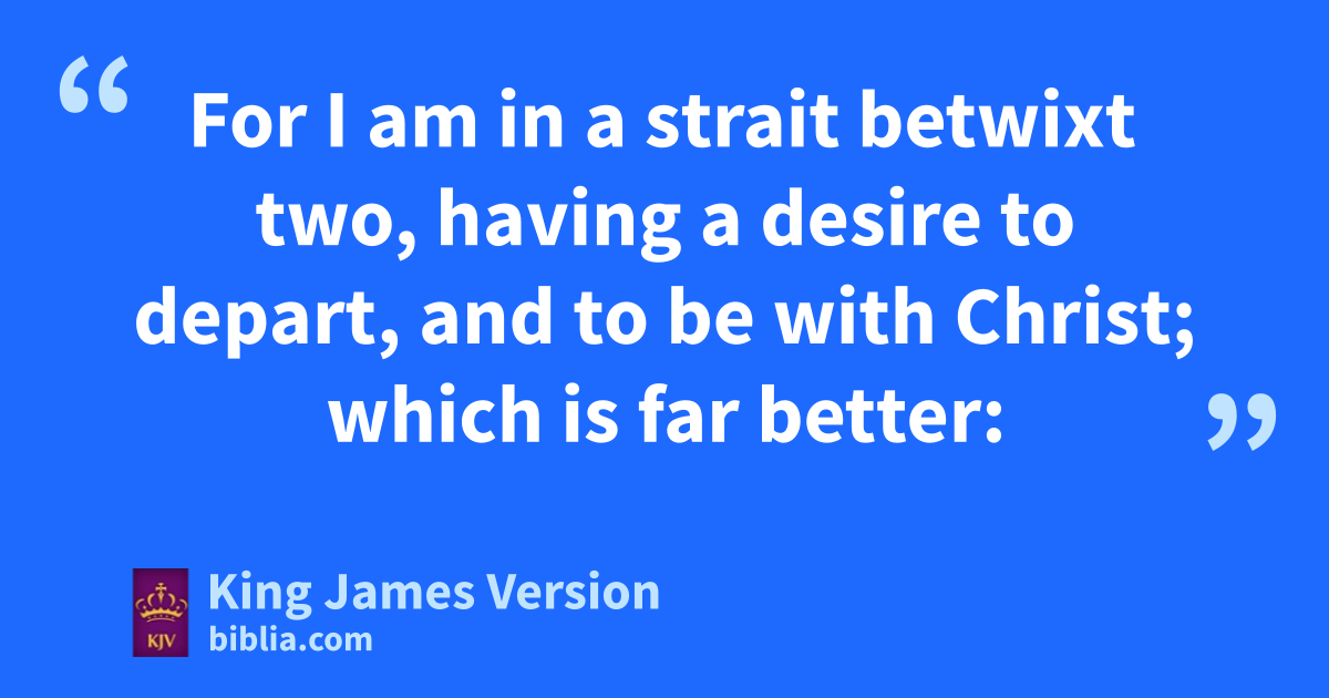 12 But I would ye should understand, brethren, that the things which happened unto me have fallen out rather unto the hfurtherance of the gospel; 13 So that imy bonds ||in Christ kare manifest in all ||the palace, and ||in all other places; 14 And many of the brethren in the Lord, waxing confident by imy bonds, are much more bold to speak the word without fear. 15 Some indeed preach Christ leven of envy and strife; and some also of good will: 16 The one preach Christ mof contention, not sincerely, supposing to add affliction to imy bonds: 17 But the other of love, nknowing that oI am set for pthe defence of the gospel. 18 What then? notwithstanding, every way, whether in pretence, or in truth, Christ is preached; and I therein do rejoice, yea, and will rejoice. 19 For I know that this shall turn to my salvation qthrough your prayer, and the supply of rthe Spirit of Jesus Christ, 20 According to my searnest expectation and my hope, that tin nothing I shall be ashamed, but that uwith all boldness, as always, so now also Christ shall be magnified in my body, whether it be by life, or by death. 21 For to me wto live is Christ, and to die is gain. 22 But if I live in the flesh, this is the fruit of my labour: yet what I shall choose I wot not. 23 For xI am in a strait betwixt two, yhaving a desire zto depart, and to be with Christ; which is far better: 24 Nevertheless to abide in the flesh is more needful for you. 25 And ahaving this confidence, I know that I shall babide and continue with you all for your cfurtherance and joy of faith; 26 That dyour rejoicing may be more abundant in Jesus Christ for me by my coming to you again.