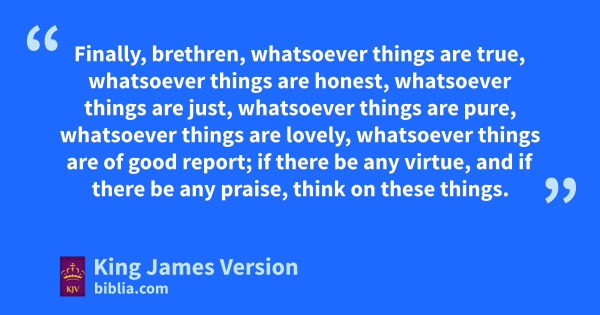 4 kRejoice in the Lord alway: and again I say, Rejoice. 5 Let your lmoderation be known unto all men. mThe Lord is at hand. 6 nBe careful for nothing; but in every thing by oprayer and osupplication owith thanksgiving let your requests be made known unto God. 7 And pthe peace of God, which passeth all understanding, shall keep your hearts and qminds pthrough Christ Jesus. 8 rFinally, brethren, whatsoever things are true, whatsoever things are ||shonest, whatsoever things are just, whatsoever things are tpure, whatsoever things are lovely, whatsoever things are uof good report; if there be any virtue, and if there be any praise, think on these things. 9 vThose things, which ye have both learned, and wreceived, and heard, and seen in me, do: and xthe God of peace shall be with you.