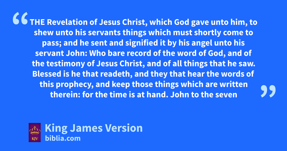 1 *The aRevelation of Jesus Christ, bwhich God gave unto him, cto shew unto his servants things which must shortly come to pass; and dhe sent and signified it cby his angel unto ehis servant fJohn: 2 Who bare record of gthe word of God, and of ghthe testimony of Jesus Christ, and of iall things that he saw. 3 jkBlessed is he that readeth, and they that hear the words of this prophecy, and kkeep those things which are written therein: lfor cthe time is at hand.