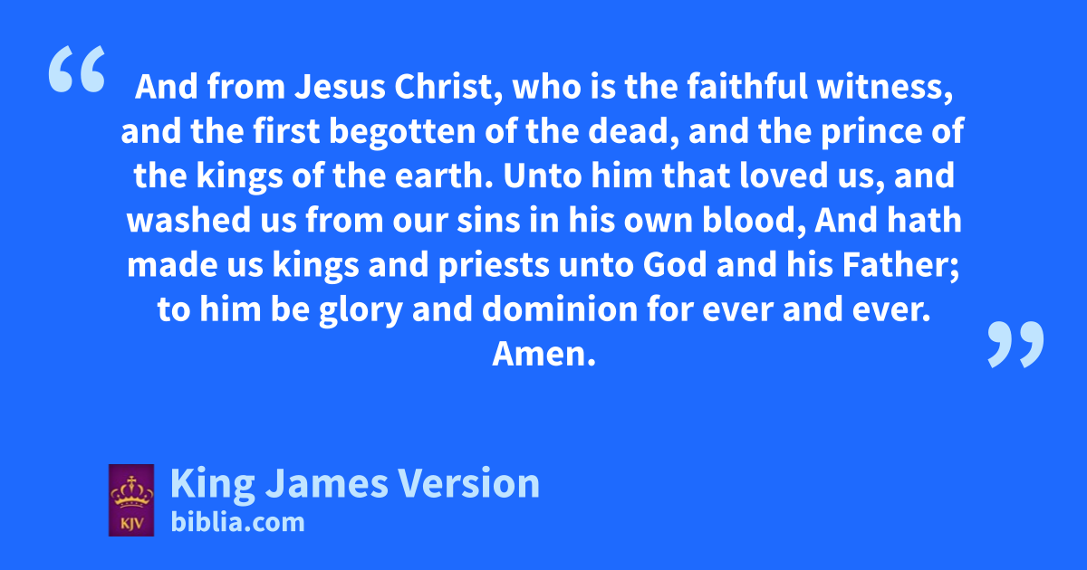 4 fJohn to mthe seven churches which are in Asia: nGrace be unto you, and npeace, from him opwhich is, oand qwhich was, oand which is to come; and from rthe seven Spirits which are before his throne; 5 And from Jesus Christ, who is sthe faithful twitness, and uthe first begotten of the dead, and vthe prince of the kings of the earth. Unto whim that loved us, and xwashed us from our sins in his own blood, 6 And yhath made us kings and priests unto zGod and his Father; ato him be glory and bdominion for ever and ever. Amen.