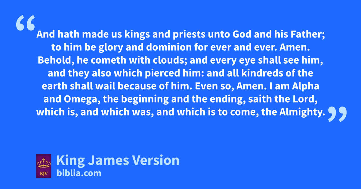 4 fJohn to mthe seven churches which are in Asia: nGrace be unto you, and npeace, from him opwhich is, oand qwhich was, oand which is to come; and from rthe seven Spirits which are before his throne; 5 And from Jesus Christ, who is sthe faithful twitness, and uthe first begotten of the dead, and vthe prince of the kings of the earth. Unto whim that loved us, and xwashed us from our sins in his own blood, 6 And yhath made us kings and priests unto zGod and his Father; ato him be glory and bdominion for ever and ever. Amen.