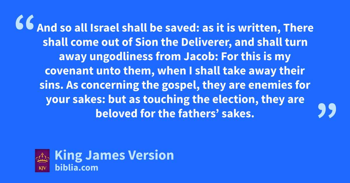 25 For iiI would not, brethren, that ye should be ignorant of this mystery, jlest ye should be wise in your own conceits; kthat ||blindness lin part is happened to Israel, muntil the fulness of the Gentiles be come in. 26 And iso all Israel shall be saved: as it is written, nThere shall come oout of Sion the Deliverer, and pshall turn away ungodliness from Jacob: 27 For this is my covenant unto them, qwhen I shall take away their sins. 28 As concerning the gospel, they are enemies for your sakes: but as touching the election, they are rbeloved for the fathers’ sakes. 29 For the gifts and calling sof God are twithout repentance. 30 For as ye uin times past have not ||believed God, wyet have now obtained mercy through their unbelief: 31 Even so have these also now not ||believed, that through your mercy they also may obtain mercy. 32 For xGod hath ||concluded them all in unbelief, that he might have mercy upon all.