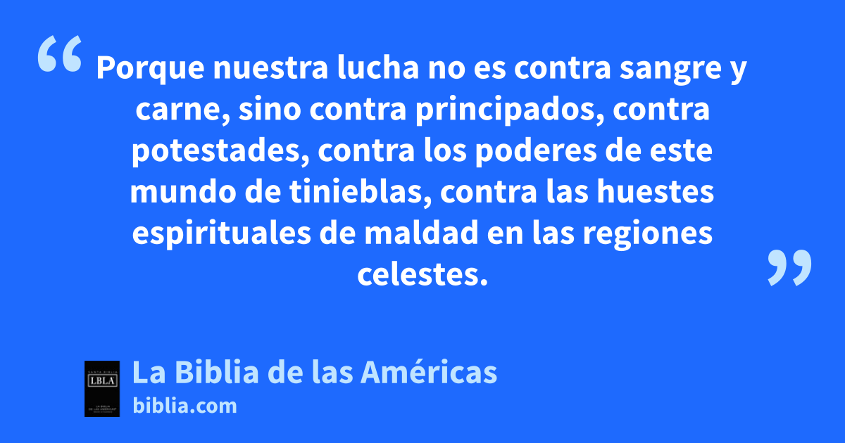 12 Porque nuestra luchaa no es contra sangre y carneb, sino contra principados, contra potestades, contra los poderes1 de este mundoc de tinieblasd, contra las huestes espirituales de maldad en las regiones celestese.