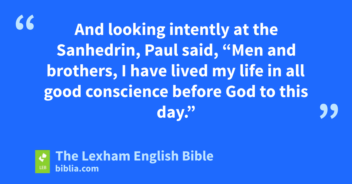 23 And looking intently at the Sanhedrin, Paul said, “Men and brothers, I have lived my life in all good conscience before God to this day.” 2 So the high priest Ananias ordered those standing near him to strike his mouth. 3 Then Paul said to him, “God is going to strike you, you whitewashed wall! And are you sitting there judging me according to the law, and acting contrary to the law do you order me to be struck?” 4 And those who stood nearby said, “Are you reviling the high priest of God?” 5 And Paul said, “I did not know, brothers, that he was high priest. For it is written, ‘You must not speak evil of a ruler of your people.’ ”a