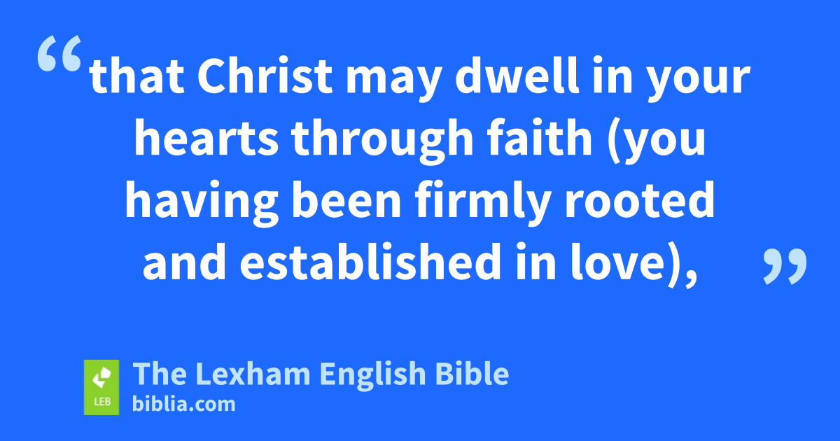 14 On account of this, I bend my knees before the Father, 15 from whom everyd family in heaven and on earth is named, 16 that he may grant you according to the riches of his glory to be strengthened with power through his Spirit in the inner person, 17 that Christ may dwell in your hearts through faith (you having been firmly rooted and established in love), 18 in order that you may be strong enough to grasp together with all the saints what is the breadth, and length, and height, and depth, 19 and to know the love of Christ that surpasses knowledge, in order that you may be filled up to all the fullness of God.