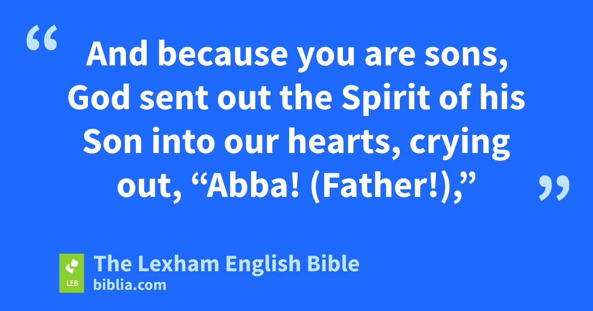 4 Now I say, for as long a time as the heir is a child, he is no different from a slave, although he* is master of everything, 2 but he is under guardians and managers until the time set by his father. 3 So also we, when we were children, we were enslaved under the elemental spirits of the world. 4 But when the fullness of time came, God sent out his Son, born of a woman, born under the law, 5 in order that he might redeem those under the law, in order that we might receive the adoption. 6 And because you are sons, God sent out the Spirit of his Son into our hearts, crying out, “Abba!a (Father!),” 7 so that you are no longer a slave but a son, and if a son, also an heir through God.