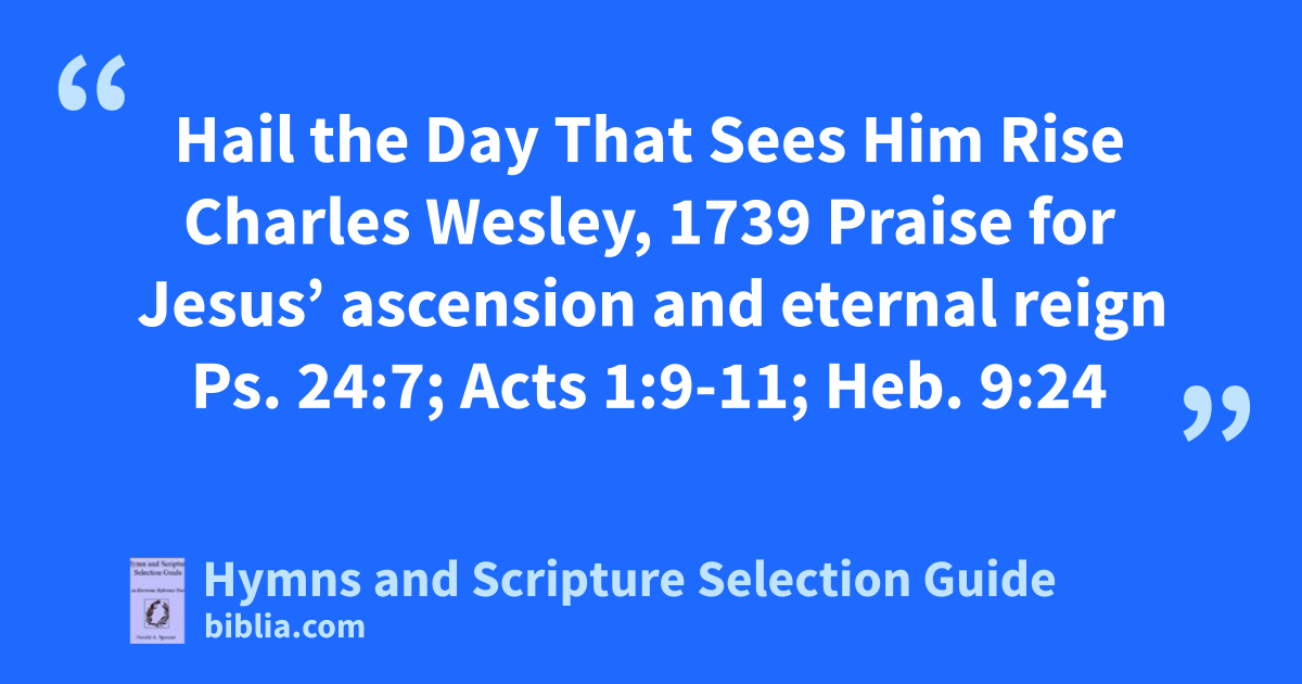 Hail the Day That Sees Him Rise Charles Wesley, 1739 Praise for Jesus’ ascension and eternal reign Ps. 24:7; Acts 1:9-11; Heb. 9:24