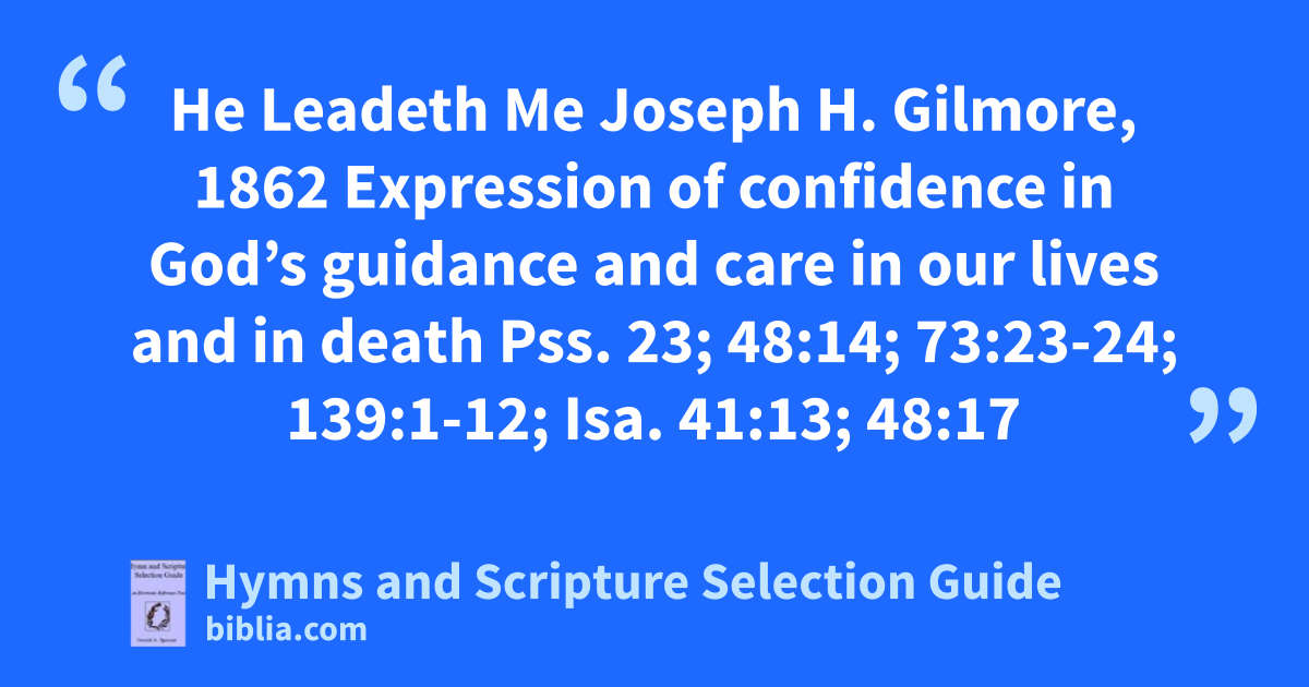 He Leadeth Me Joseph H. Gilmore, 1862 Expression of confidence in God’s guidance and care in our lives and in death Pss. 23; 48:14; 73:23-24; 139:1-12; Isa. 41:13; 48:17