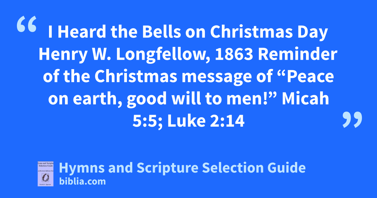 I Heard the Bells on Christmas Day Henry W. Longfellow, 1863 Reminder of the Christmas message of “Peace on earth, good will to men!” Micah 5:5; Luke 2:14