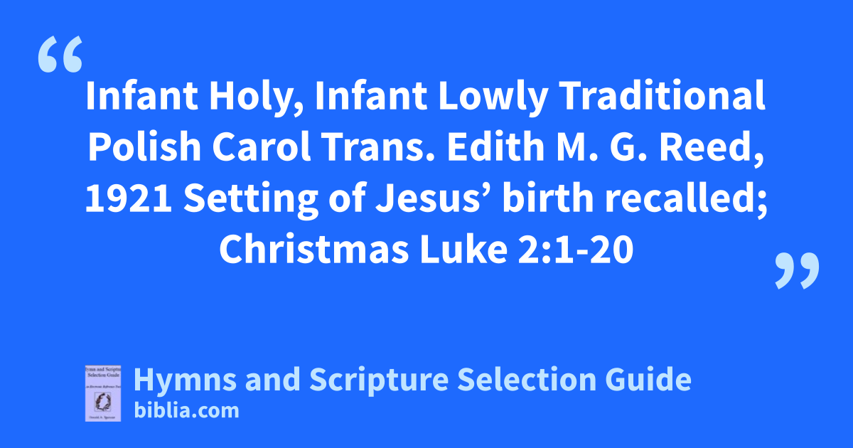 Infant Holy, Infant Lowly Traditional Polish Carol Trans. Edith M. G. Reed, 1921 Setting of Jesus’ birth recalled; Christmas Luke 2:1-20