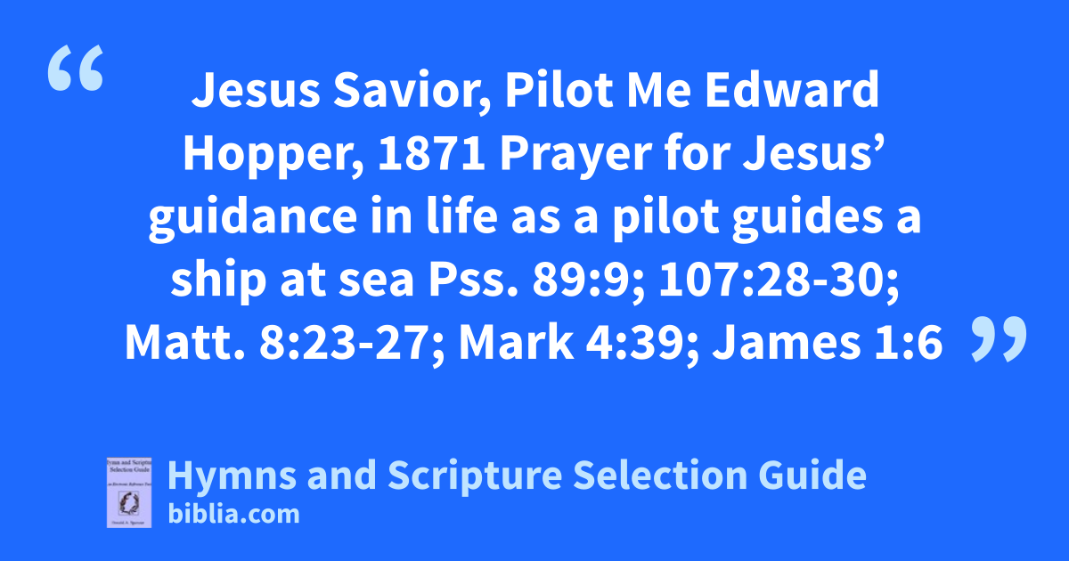 Jesus Savior, Pilot Me Edward Hopper, 1871 Prayer for Jesus’ guidance in life as a pilot guides a ship at sea Pss. 89:9; 107:28-30; Matt. 8:23-27; Mark 4:39; James 1:6