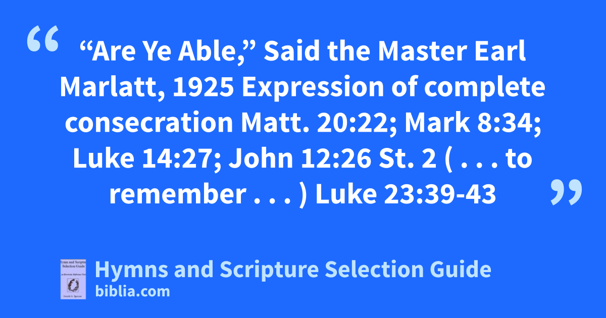 Hymn and Scripture Selection Guide - presents the 432 hymns in alphabetical order. The related Scripture passages, taken from the Old and New Testaments as commonly in use by American Protestant denominations, are listed under each hymn. Passages that are directly related to a hymn, such as paraphrases and direct quotations, are in boldface type. Under the title of each hymn in italics there are...