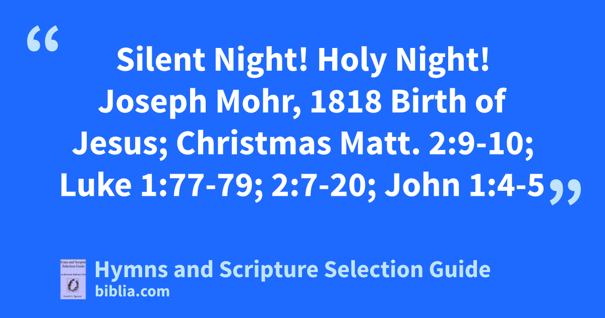 Silent Night! Holy Night! Joseph Mohr, 1818 Birth of Jesus; Christmas Matt. 2:9-10; Luke 1:77-79; 2:7-20; John 1:4-5
