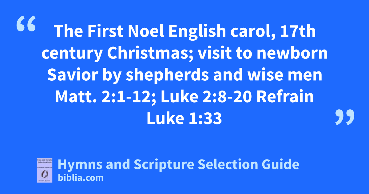The First Noel English carol, 17th century Christmas; visit to newborn Savior by shepherds and wise men Matt. 2:1-12; Luke 2:8-20 Refrain Luke 1:33