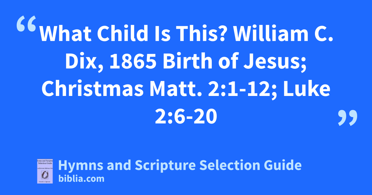 What Child Is This? William C. Dix, 1865 Birth of Jesus; Christmas Matt. 2:1-12; Luke 2:6-20
