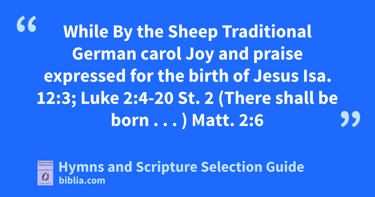 While By the Sheep Traditional German carol Joy and praise expressed for the birth of Jesus Isa. 12:3; Luke 2:4-20 St. 2 (There shall be born . . . ) Matt. 2:6