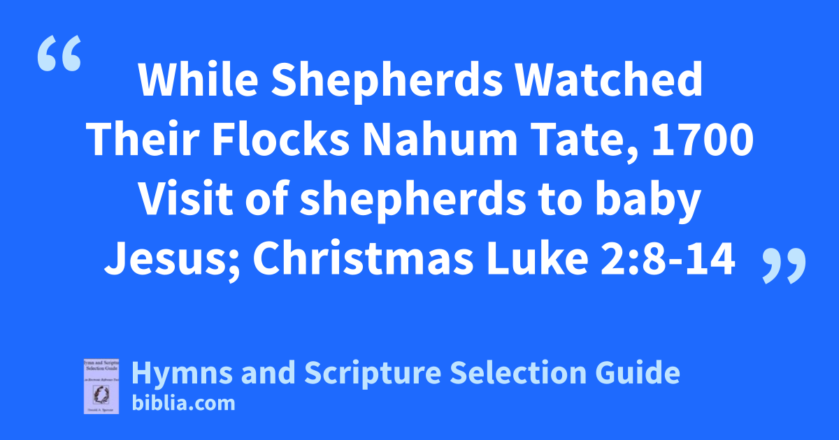 While Shepherds Watched Their Flocks Nahum Tate, 1700 Visit of shepherds to baby Jesus; Christmas Luke 2:8-14
