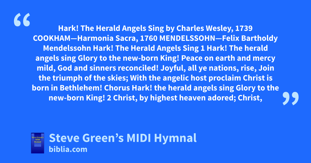 Hark! The Herald Angels Sing by Charles Wesley, 1739 COOKHAM—Harmonia Sacra, 1760 MENDELSSOHN—Felix Bartholdy Mendelssohn Hark! The Herald Angels Sing 1 Hark! The herald angels sing Glory to the new-born King! Peace on earth and mercy mild, God and sinners reconciled! Joyful, all ye nations, rise, Join the triumph of the skies; With the angelic host proclaim Christ is born in Bethlehem! Chorus Hark! the herald angels sing Glory to the new-born King! 2 Christ, by highest heaven adored; Christ,