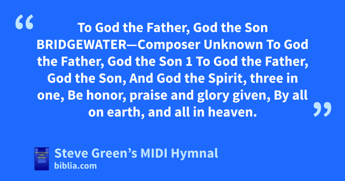 To God the Father, God the Son BRIDGEWATER—Composer Unknown To God the Father, God the Son 1 To God the Father, God the Son, And God the Spirit, three in one, Be honor, praise and glory given, By all on earth, and all in heaven.