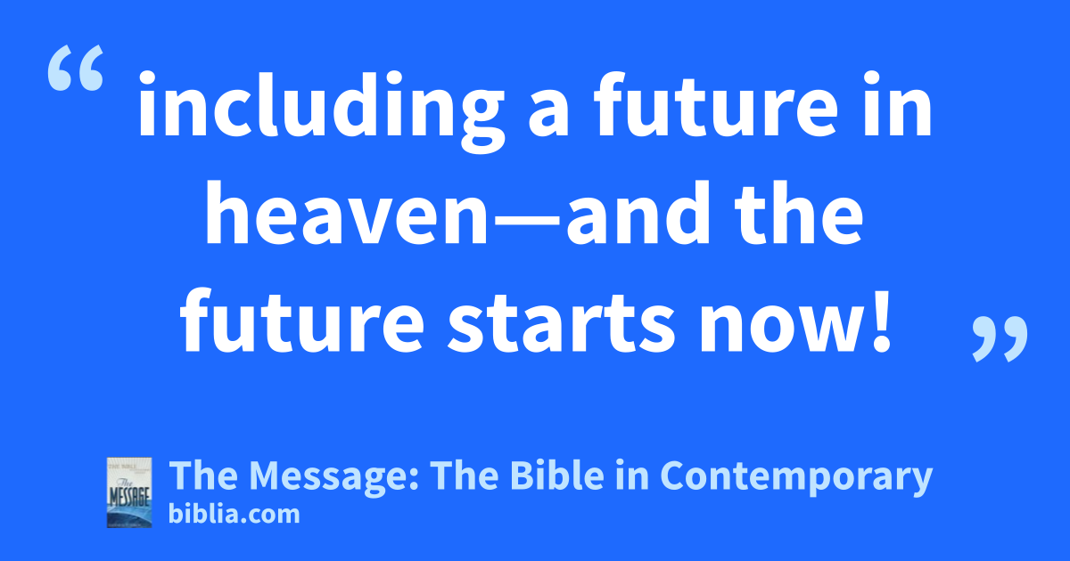 3–5 What a God we have! And how fortunate we are to have him, this Father of our Master Jesus! Because Jesus was raised from the dead, we’ve been given a brand-new life and have everything to live for, including a future in heaven—and the future starts now! God is keeping careful watch over us and the future. The Day is coming when you’ll have it all—life healed and whole.