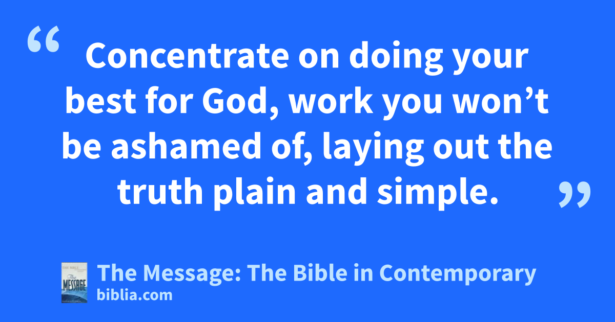 14–18 Repeat these basic essentials over and over to God’s people. Warn them before God against pious nitpicking, which chips away at the faith. It just wears everyone out. Concentrate on doing your best for God, work you won’t be ashamed of, laying out the truth plain and simple. Stay clear of pious talk that is only talk. Words are not mere words, you know. If they’re not backed by a godly life, they accumulate as poison in the soul. Hymenaeus and Philetus are examples, throwing believers off stride and missing the truth by a mile by saying the resurrection is over and done with.