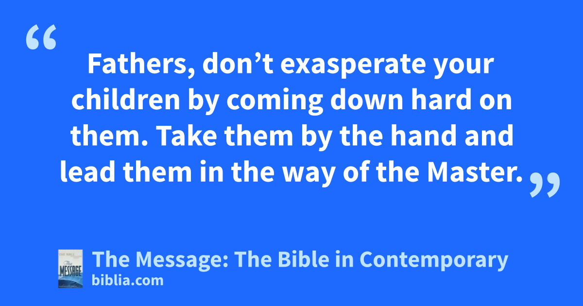 4 Fathers, don’t exasperate your children by coming down hard on them. Take them by the hand and lead them in the way of the Master.