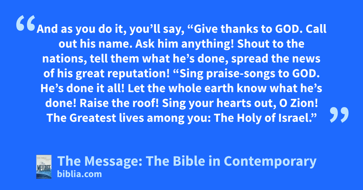 5–6 “Sing praise-songs to God. He’s done it all!